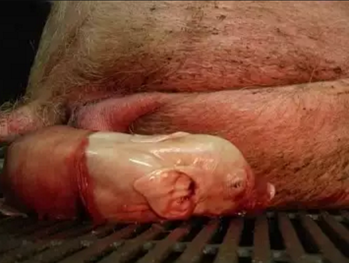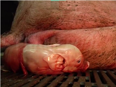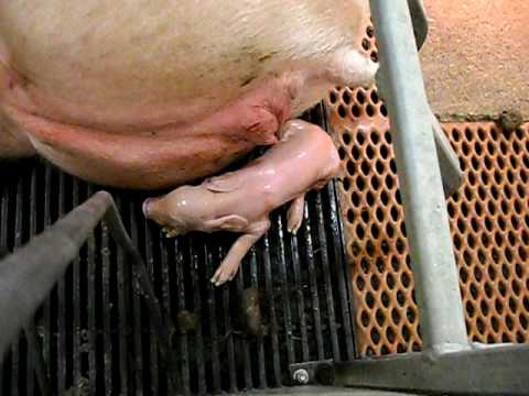 Cuando ha terminado el parto, se verifica la cantidad de neonatos con la cantidad de placentas expulsados, la disminución de las contracciones y la hembra emitiendo sonidos para estimular a los lechones a succionar.