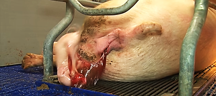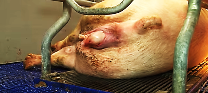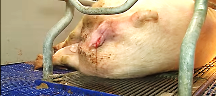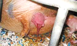 La cerda en posición sentada o de pie, frota su nariz sobre el piso y patea el piso de la cama como continuación de las contracciones iniciales.