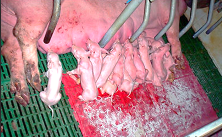 Como parte de un buen manejo durante el parto, el operador debe dirigir o checar que los neonatos se dirijan inmediatamente a la zona mamaria a mamar el calostro.