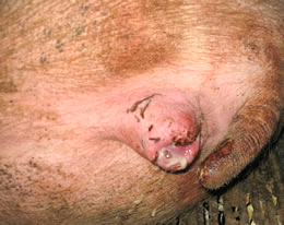 Al inicio de las contracciones, la cerda muerde los tubos de la cama, se rasca en cuerpo y cabeza contra los mismos.
